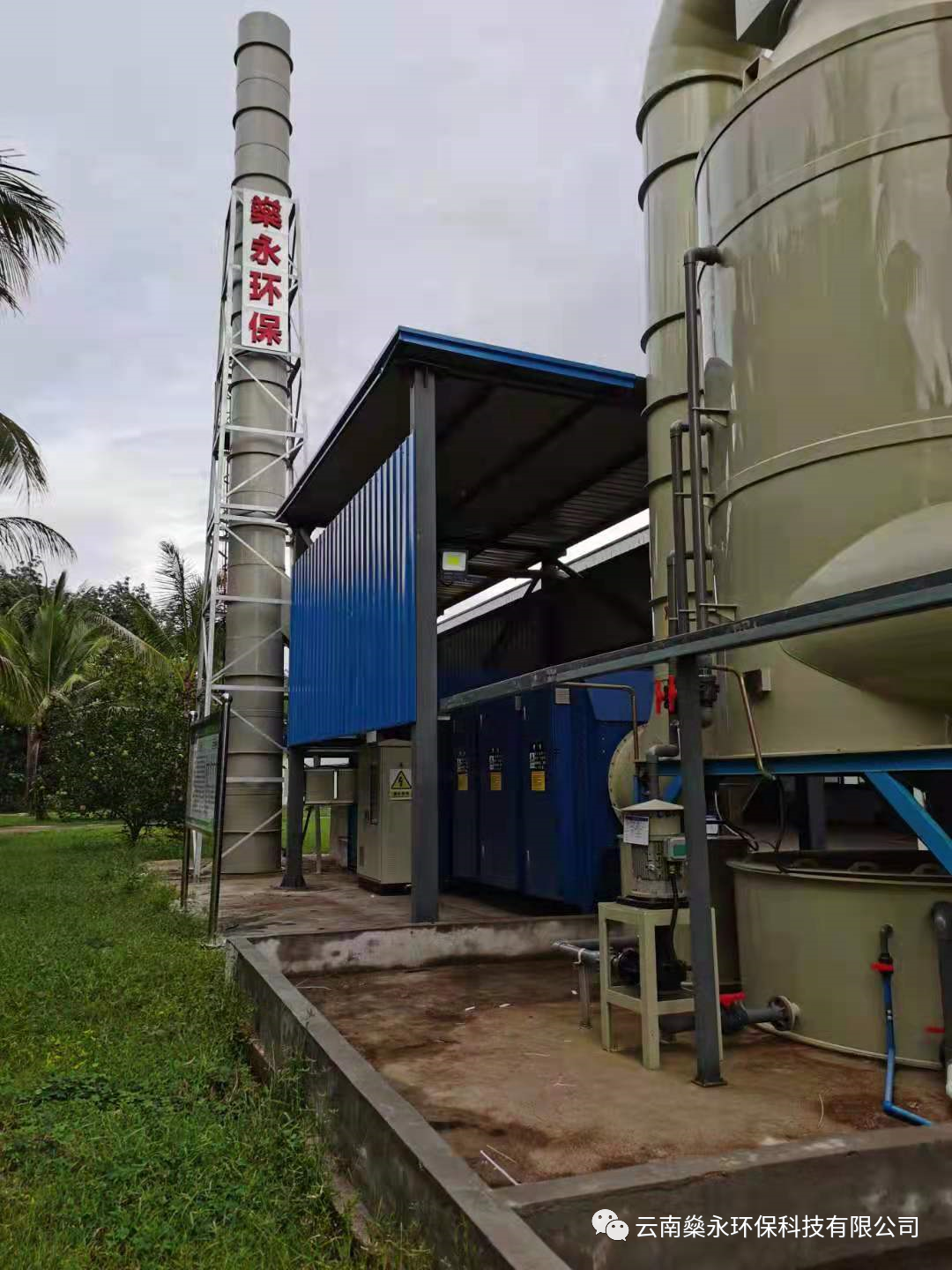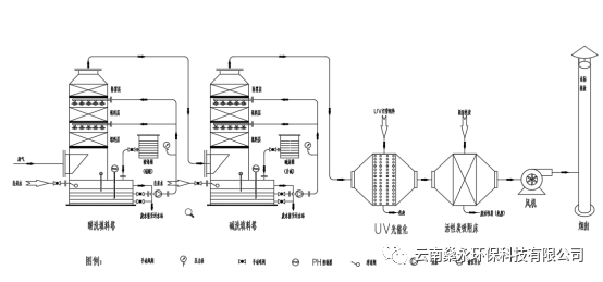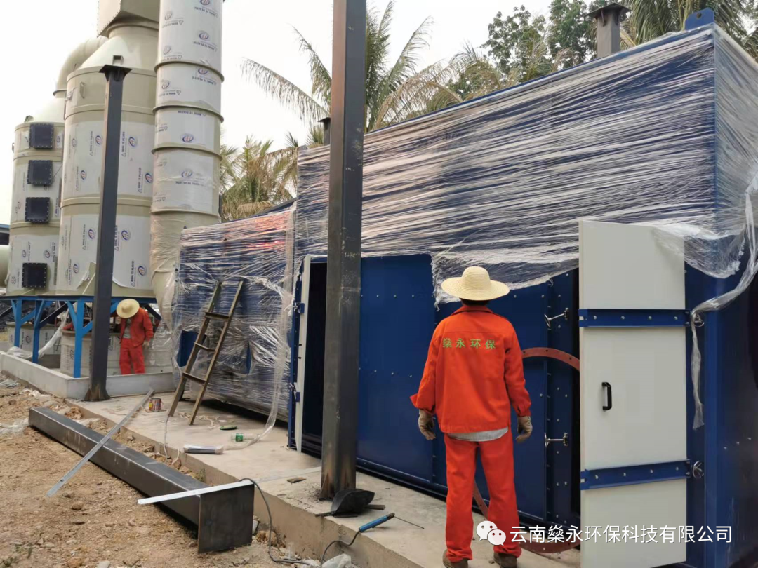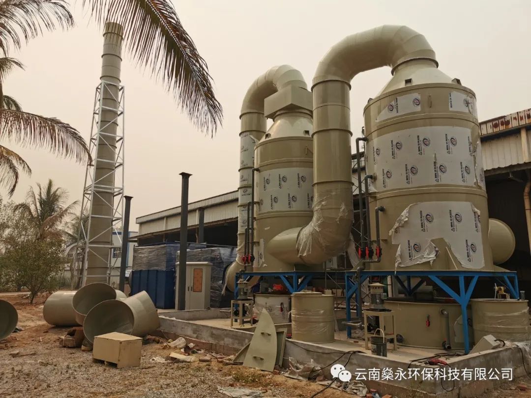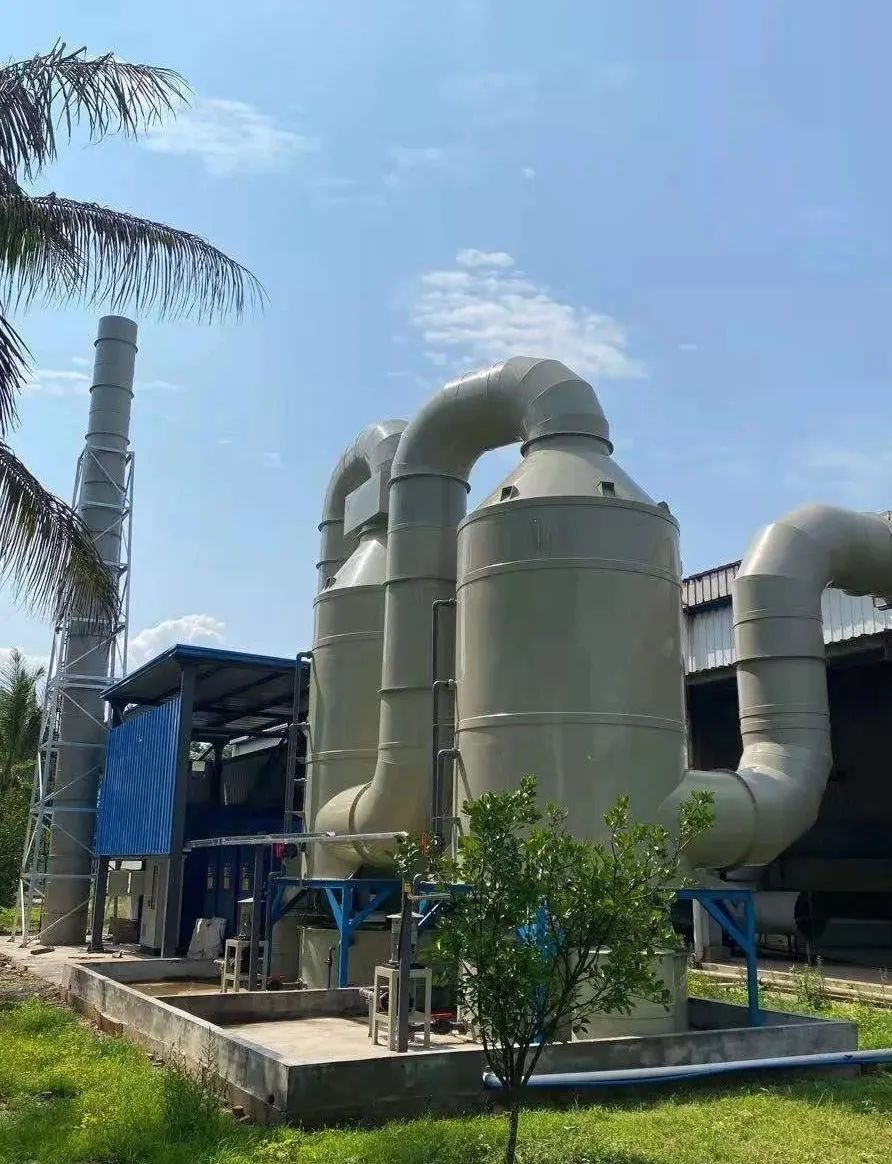 针对云南天然橡胶产业集团西双版纳景阳有限公司勐满第三制胶烘干段臭气.公司利用密闭烘干炉收集;通过PP管道依次送入 酸洗塔、碱洗塔;洗涤塔属于微分接触逆流式,塔内的填料是气液两相接触的基本构件。它能提供足够大的表面积,处理效果更佳,且对气液流动又不致造成过大的阻力。减少能源损耗,同时配备除臭液投加系统,保障酸、碱液物化性质稳定。在洗涤塔内,恶臭气体与雾化工艺水逆流接触,去除部分粉尘,易溶、可溶性物质,将气体中的污染物质分离出来,转化为无害物质,以达到净化气体的目的;经除雾器过滤后进人UV光氧催化,利用高能高臭氧UV紫外线光束分解空气中的氧分子产生游离氧,游离氧氧分子结合,进而产生臭氧,臭氧对有机物具有极强的氧化作用,对恶臭气体及其它刺激性异味有极强的清除效果,使恶臭气体物质其降解转化成低分子化合物、水和二氧化碳;最后进入活性炭吸附箱,利用多微孔活性炭吸附有机废气。活性炭经过活化处理后,比表面积一般可达700-1000m2/g,具有优异和广泛的吸附能力。吸附可使有机废气净化效率高达90-95%。活性炭还是一种非极性吸附剂,具有疏水性和亲有机物的性质,它能吸附绝大部分有机气体,如苯类、醛酮类、醇类、烃类等以及恶臭物质。活性碳吸附饱和后直接更换;活性炭过滤之后高空达标排放的整体治理措施。