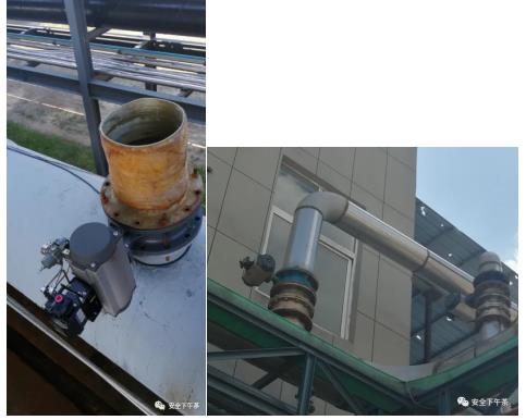 3.产生VOCs废气含有酸性或碱性组分的企业,为防腐需要采用玻璃钢、PP、PE管材输送废气,并在RTO引风机前才进行酸/碱处理,在上述过程中,废气输送管道一般距离较长、气体流速较快,管道内可能因产生的静电大量积聚易引发爆炸等安全事故。此类废气宜在各车间先进行酸碱预处理,然后采用金属管道,并依据《石油化工静电接地设计规范》(SH/T 3097-2017)的要求,做好管道法兰跨接和静电接地。
