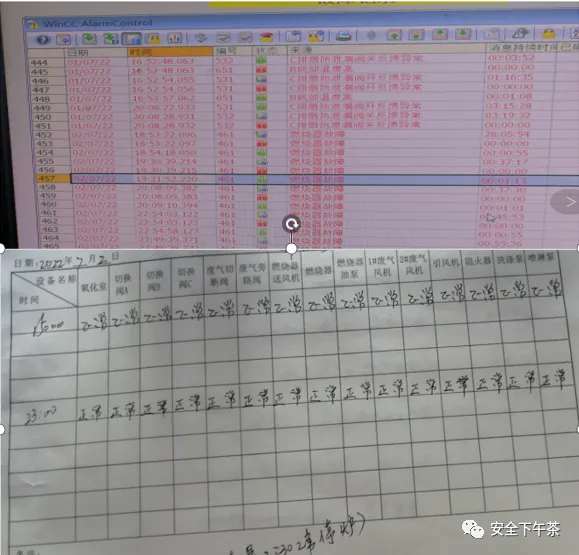 如某企业2022年7月2日从18:53开始到23:50,燃烧器一直持续故障报警,但操作记录均为“正常”。